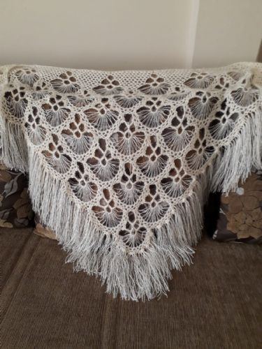 Beyaz ve siyah renkleri mevcut gelinlik üzerine şal